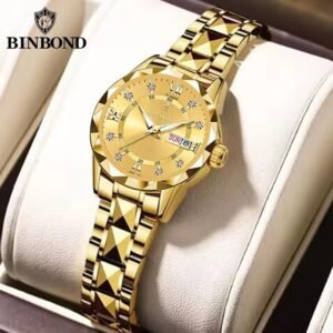 100% Original Luxury Binbond authentic men’s watch waterproof night light dual calendar watch men’s quartz watch diamond ceiling glass- Golden – Binbond Daimond…