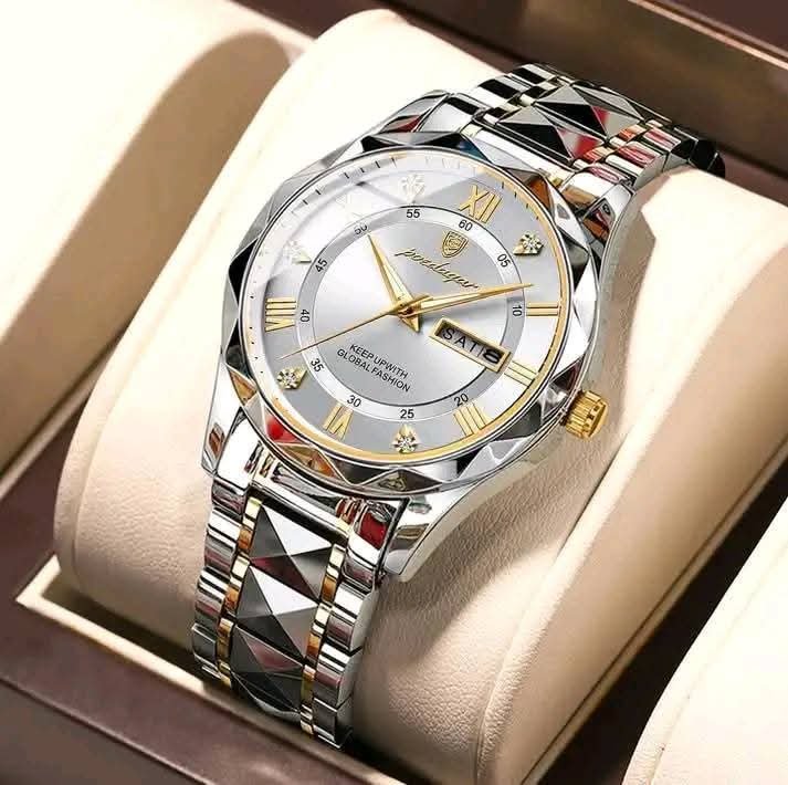 NEW POEDAGAR 615 Quartz Stainless Steel Watch For Men – golden
